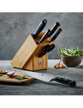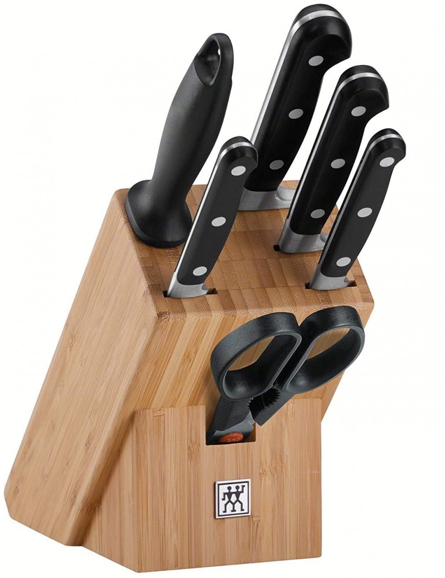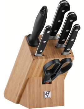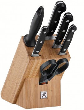 Blok na nože ZWILLING, 7 ks, bambusový blok, nože, Professional S, barva: černá, přírodní, stříbrná