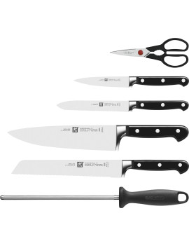 Robustní plastové rukojeti v 3nýtovém provedení, trvanlivé, odolné vůči korozi, doporučujeme mýt ručně Rozsah dodávky: 1x blok nožů ZWILLING Professional S, 7 ks, 1 špikovací nůž (10 cm/65 g), 1 univerzální nůž (13 cm/75 g), 1 kuchařský nůž (20 cm/257 g), 1 nůž na chléb (20 cm/160 g), 1 ocílka, 1 blok nožů, 1 univerzální nůžky (21 cm), materiál: Speciální rukojeti z nerezové oceli a plastu